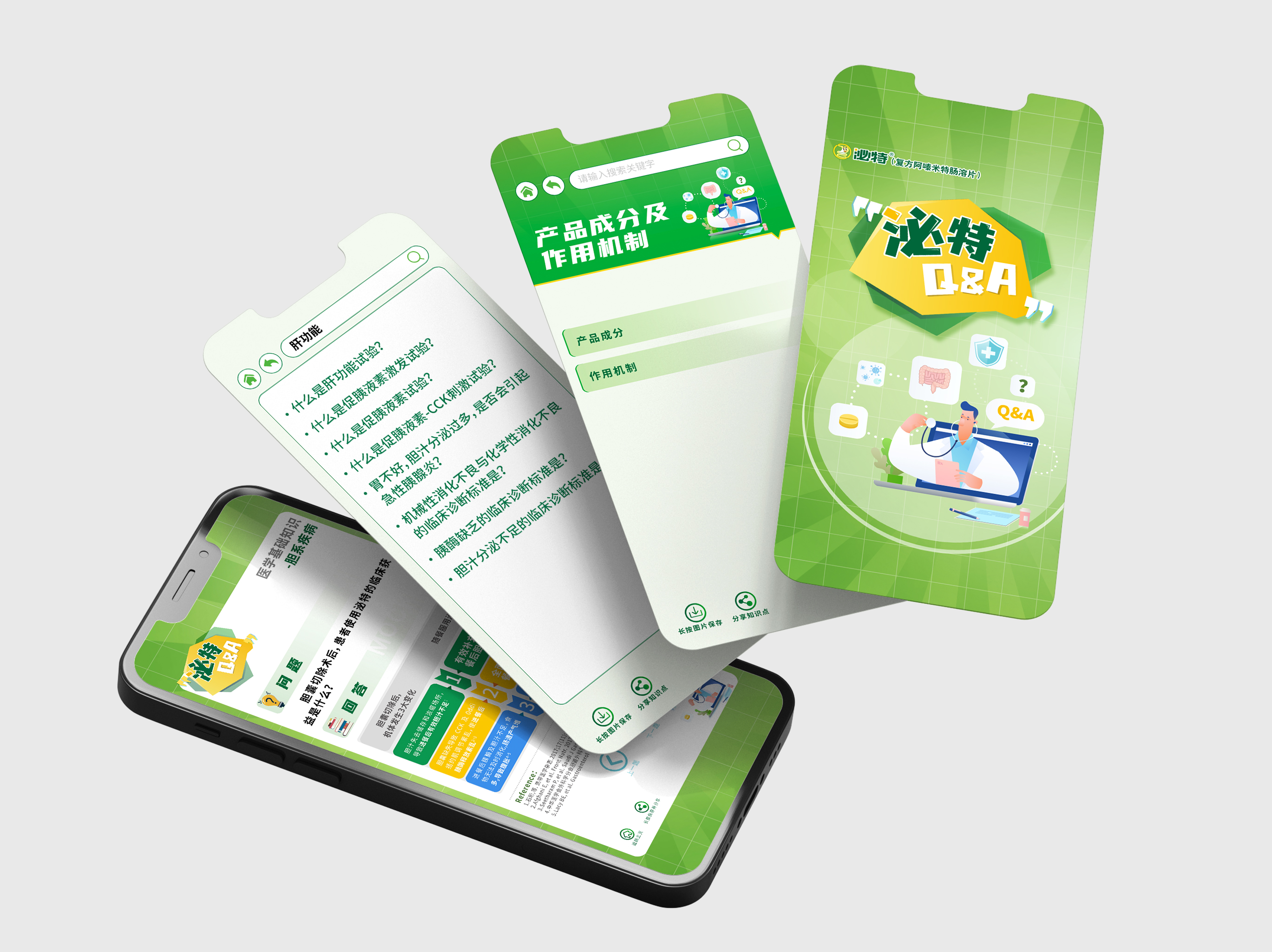 主色调锁死“泌特专属绿”,浅绿铺底、深绿勾边,再加点医药小图标当“葱花”,界面画得清清爽爽,别搞花里胡哨的,主打一个专业又养眼。把成分机制、QA问题这些“干货”塞进去,文字要像唠嗑一样好懂,别写得跟医学天书似的;再给交互加小彩蛋,点击弹出知识点,让用户玩着就把内容看了。最后导出设计文件丢给开发,坐等“绿乎乎”的落地。